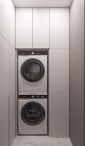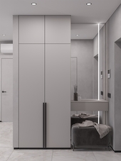 Дизайн минималистичной двухкомнатной квартиры с отдельной гардеробной и мини-постирочной