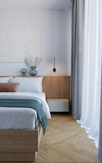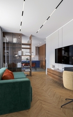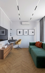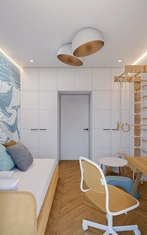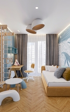 Палитра ярких насыщенных оттенков в интерьере трехкомнатной квартиры